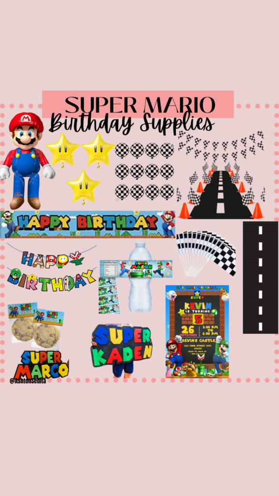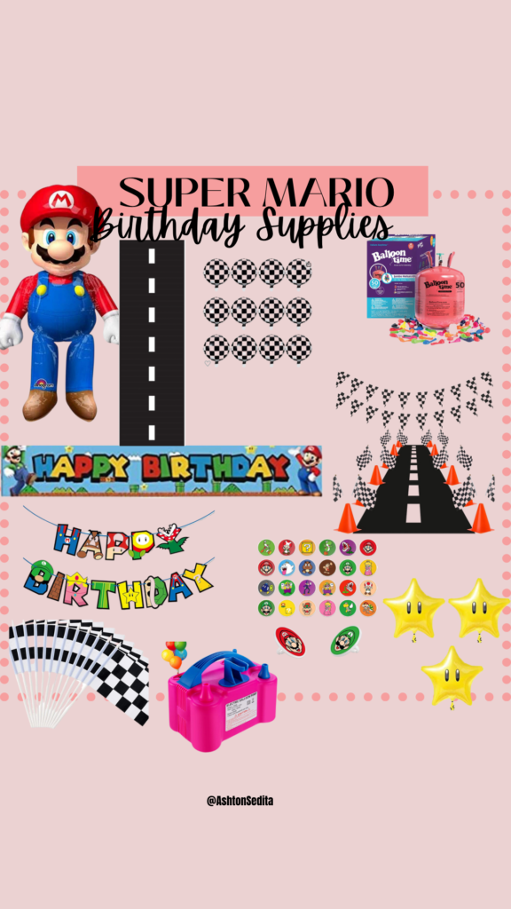 If you have been following along on my daily vlogs on social media I have been sharing all the things that went into planning this party. From the cleaning, to painting the baseboards (WHAT WAS I THINKING!?!), and of course the fun DIY’S we did for the party. Now, for most of the decor I did purchase it from either Amazon, Walmart, Party city, Etsy and Dollar Tree. I will link everything I can below for you, but I will be honest Amazon and Etsy had the BEST Mario options!