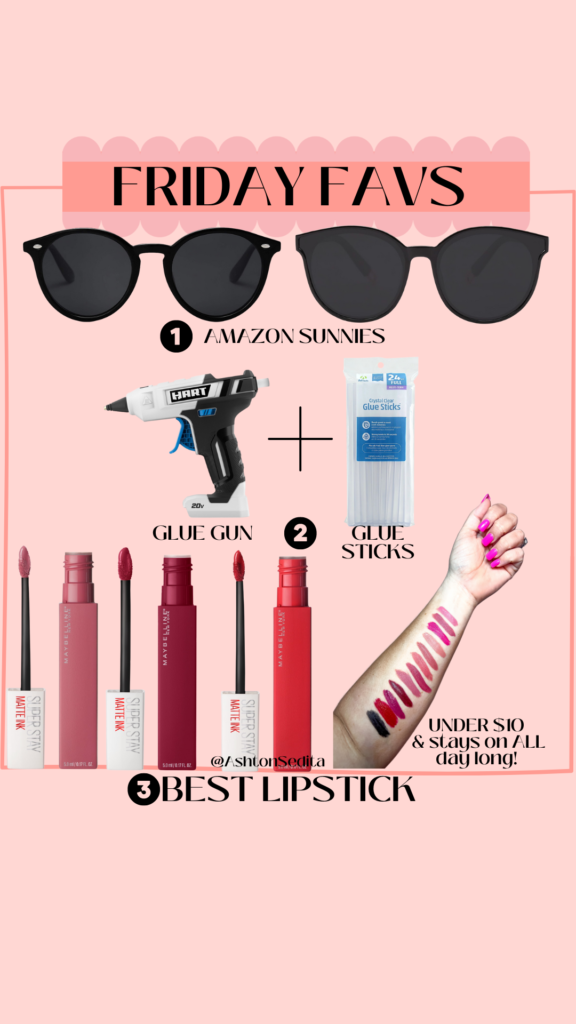 FRIDAY FAV#1: AMAZON SUNNIES – This week we finally had some pretty sunshine here in Texas. I feel like it has been cloudy and yucky for months so I haven’t had a chance to use or appreciate my favorite Amazon sunnies! While wearing them this week I forgot how much I love them and, oddly enough, while wearing them in my stories the DMs were flooding in asking for links. I have two pairs that are my personal favorites and have linked them both here. I am the worst when it comes to sunglasses, I lose them, I break them, I scratch them. So I hate to waste money on designer brands because they will be ruined in days. I don’t really like buying sunnies at Walmart or Target because I personally fall in love with my sunglasses and then when I lose them I cannot find them again in the stores. The joy about Amazon is that the items are ALWAYS there. LOL… YOU SERIOUSLY KNOW WHAT I MEAN RIGHT!?! Anyways… I’ve linked them below.