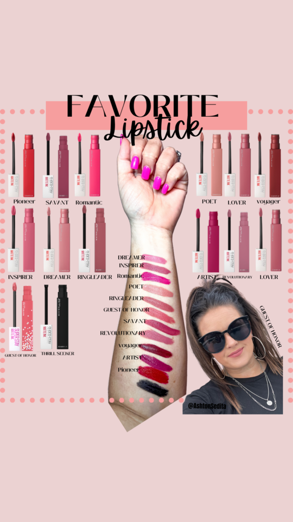 FRIDAY FAV#3: MUST HAVE LIPSTICK- My most requested DM of all time is about my lipstick! This week I tried a new color so I wanted to share! I swear I have tried every brand on the market from Sephora to Ulta and NOTHING compares to these $7 Maybelline liquid matte lipsticks. Their little catch phrase “all day long all day strong” is spot on! THEY AREN’T LYING! I can’t even get this lipstick off with face wash, I have to use my go-to facial wipes to get it off. I apply 1 coat in the morning and it will last literally until the next day… I CAN SPEAK FROM EXPERIENCE! I have a hand full of colors of Maybelline lipsticks, different ones for the seasons, but this brand lipstick is the only lipstick I wear. The last thing I want to do is reapply lipstick all day! I have linked my favorite colors and some colors I’ve never tried. Comment below if you have tried these and let me know your thoughts!