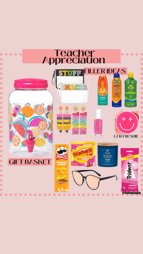 My love for teachers is strong. I could come up with a million gift ideas for these magical people of the world. I do have a few ideas on the blog if you wanted to check them out [HERE]. For this gift idea, I wanted to create a simple “summer themed” Teacher Appreciation Gift Basket. Teacher Appreciation week is the first full week in May. This year it is May 8-12, 2023. I love to give thoughtful, seasonal gifts throughout the year and typically the gift is themed with an upcoming holiday with a splash of school supplies. Since it’s the end of the school year and the last thing a teacher wants right now is school supplies, I’ve put together a summer-themed gift set with things that they can enjoy over the summer break.