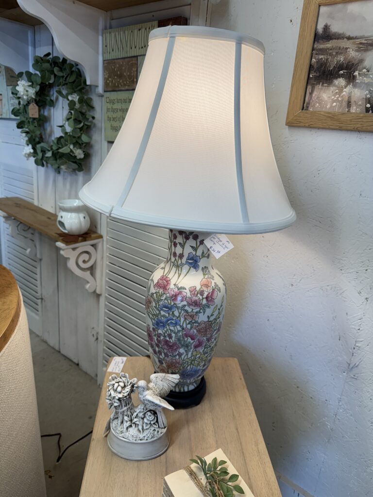 A few days before, when I was in Lake Charles, I drove through Dayton as part of my $200 budget challenge driving southeast through Texas to Louisiana. I saw the floral lamp. The most gorgeous vintage lamp with a romantic pattern and warm glow… the kind of lamp that makes you want to curl up with a good book.