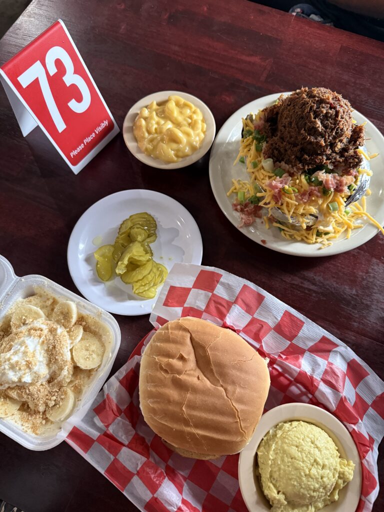 After a couple of stores, we needed food — and this was SUCH a good find. Off the Street BBQ is exactly how a local barbecue spot should be: simple, good, flavorful, and satisfying. We ordered: